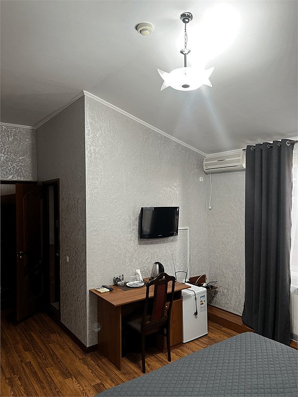 телевизор, кабельное телевидение, Wi-Fi, интернет, холодильник, кондиционер, светильник, фен, утюг, душевая кабина, халаты, пляжные полотенца, тапочки, двуспальная кровать, гладильная доска, тумбы, шкаф для одежды, письменный стол, зеркало, чайный набор, стиральная машина, чайник, унитаз, отопление, кулер на этаже, паркет, стул, стол, туалетные средства, санузел на этаже, туалет, сушилка для белья, мини-холодильник, шкаф-купе, номер для некурящих, рабочий стол, уборка номера, набор для приготовления чая и кофе, частный двор, мыло, зеркало в полный рост, прачечная (за дополнительную плату)В номере