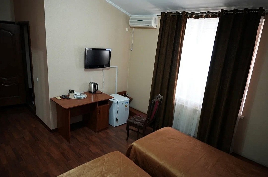 телевизор, кабельное телевидение, Wi-Fi, интернет, холодильник, кондиционер, светильник, фен, утюг, душевая кабина, халаты, пляжные полотенца, тапочки, двуспальная кровать, односпальная кровать, тумбы, письменный стол, зеркало, чайный набор, обслуживание номеров, стиральная машина, чайник, унитаз, кулер на этаже, паркет, стаканы, столовые приборы, стул, стол, туалетные средства, санузел на этаже, туалет, сушилка для белья, шкаф-купе, номер для некурящих, рабочий стол, уборка номера, набор для приготовления чая и кофе, частный двор, мыло, зеркало в полный рост, прачечная (за дополнительную плату)В номере