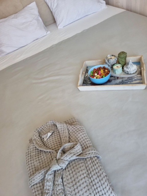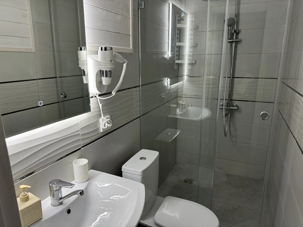 В каждом доме имеется отдельная спальная комната с шкафом и кондиционером. Зал совмещён с кухней, в зале установлен раскладной диван. Все комнаты оборудованы мебелью, телевизором, холодильником, индукционной плитой, посудой и постельными принадлежностями. В каждой комнате установлена сплит-система для поддержания температуры. В каждом доме находится санузел с душевой кабинкой и горячей водой.