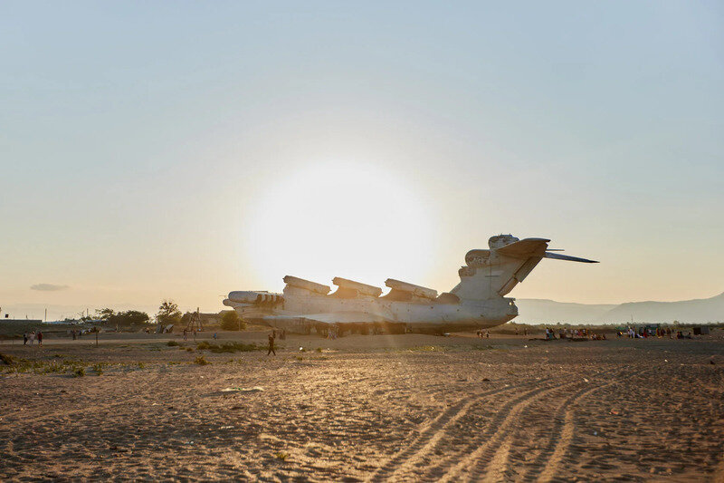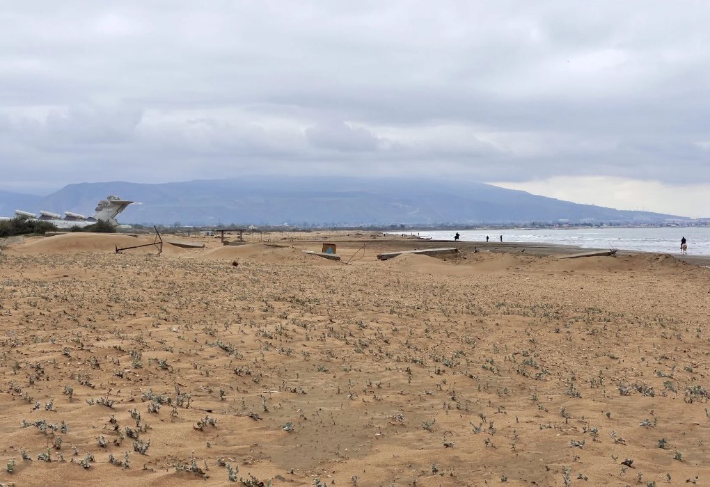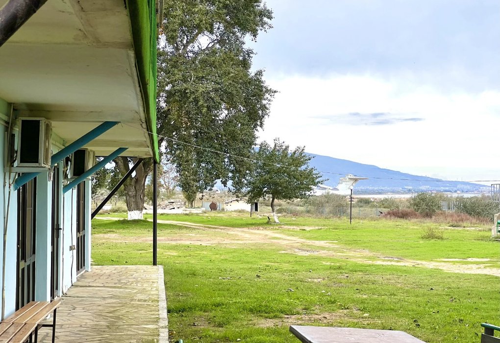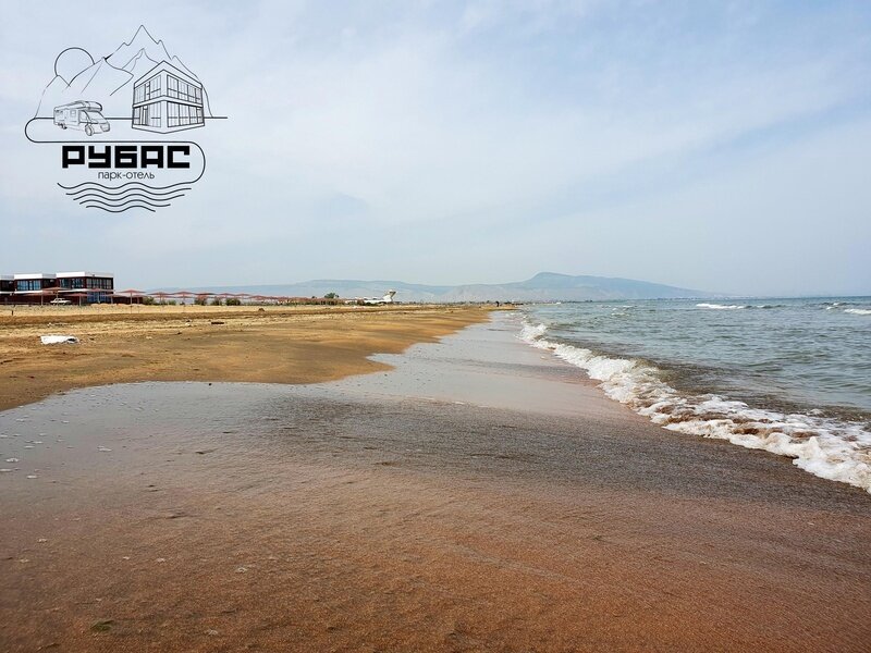 Выход из коттеджа прямо на пляж. Из окон открывается роскошный вид на Каспийское море, на горы, на достопримечательность экраноплан "Лунь".