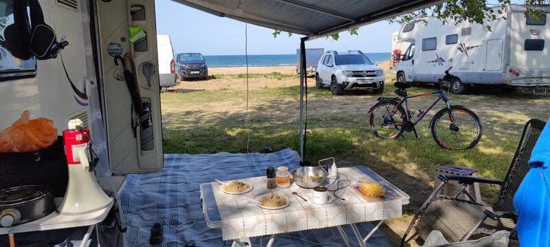 на берегу моря, душевые с горячей и холодной водой, туалеты на территории, для подключения к воде и электричеству при себе необходимо иметь удлинитель (от 10 метров) и шланг (от 10 метров), кемпинг НЕ предоставляет удлинители и шланги!Услуги и удобства