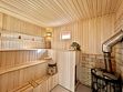 На первом этаже: комфортабельный диван во входной зоне, просторная кухня с гостиной, сауна, душ, и санузел с душевой кабиной.