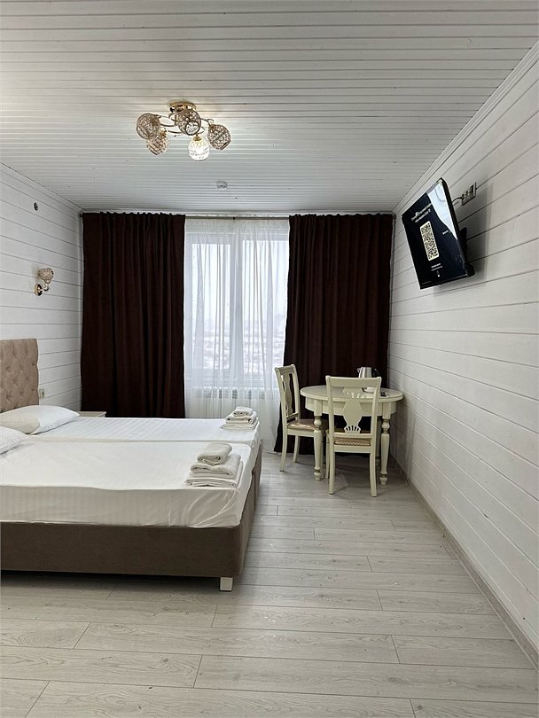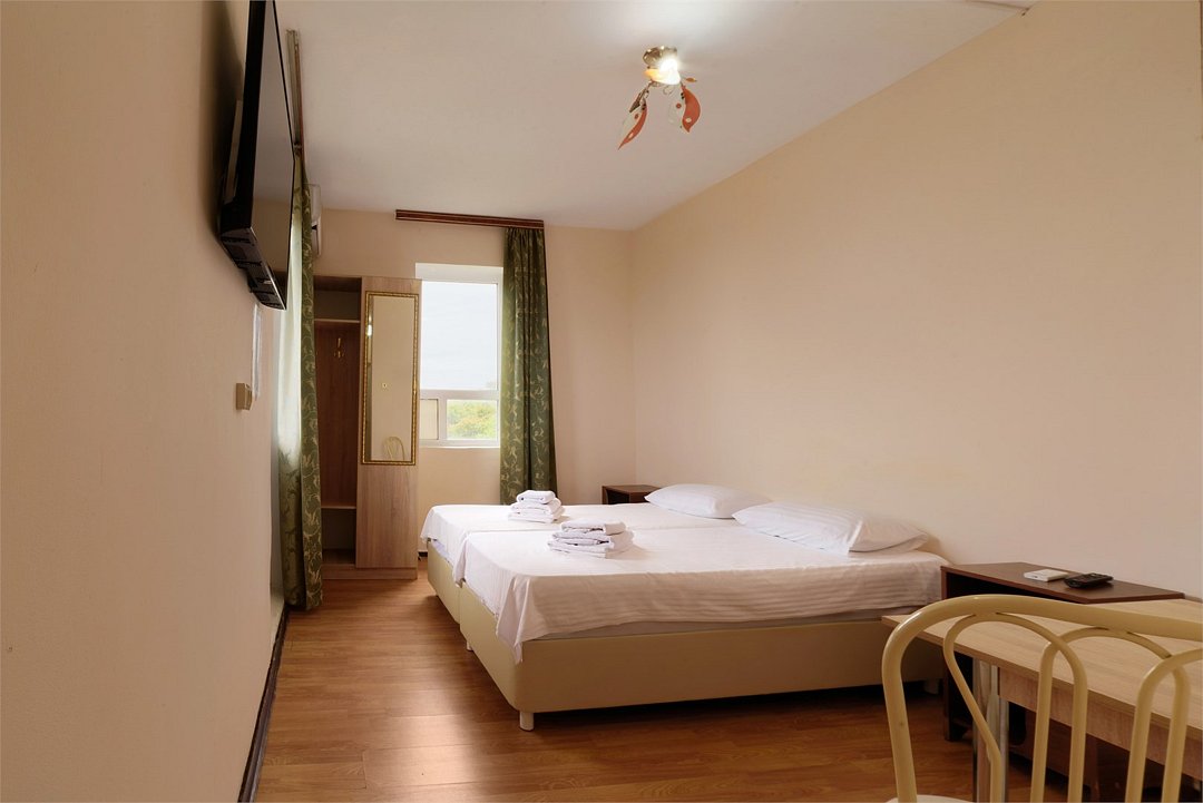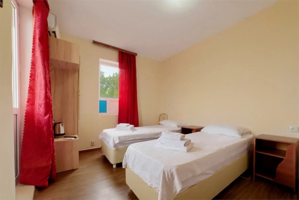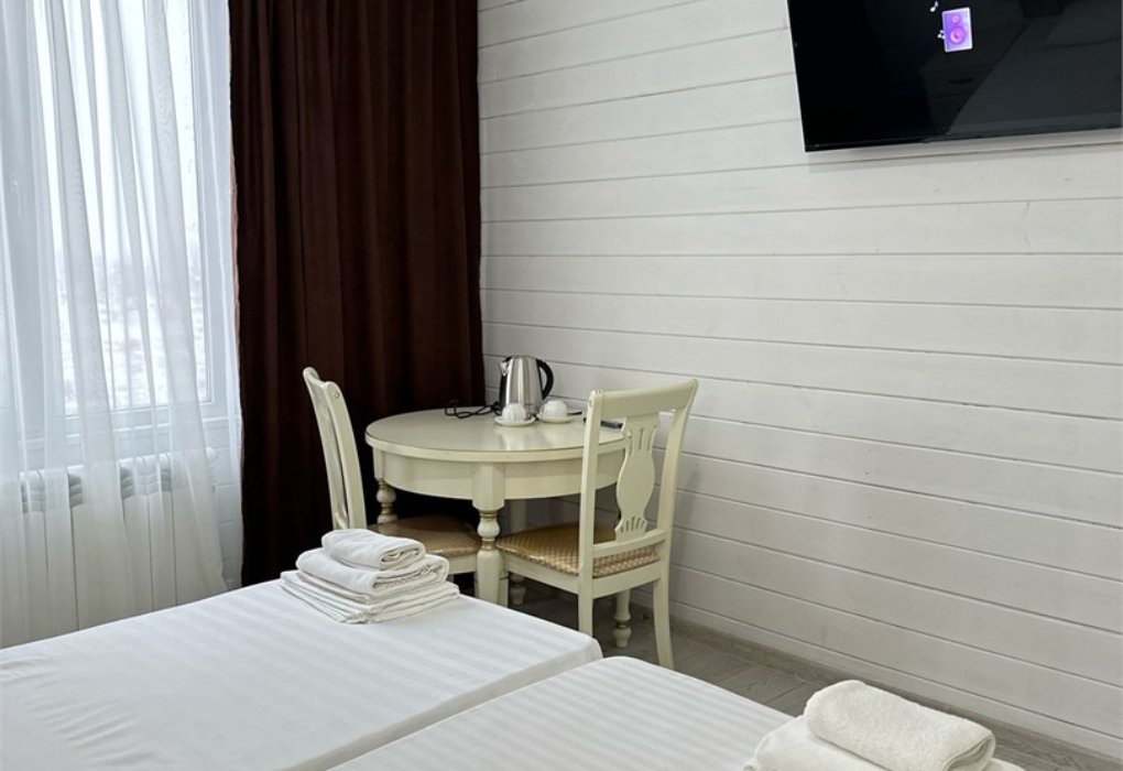 В номере есть 2 кровати (90х190 см), стулья стол, тумба, телевизор, кондиционер, Wi-fi.