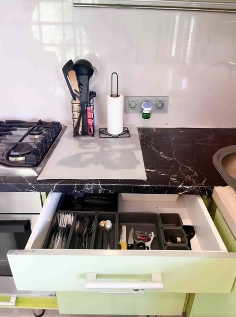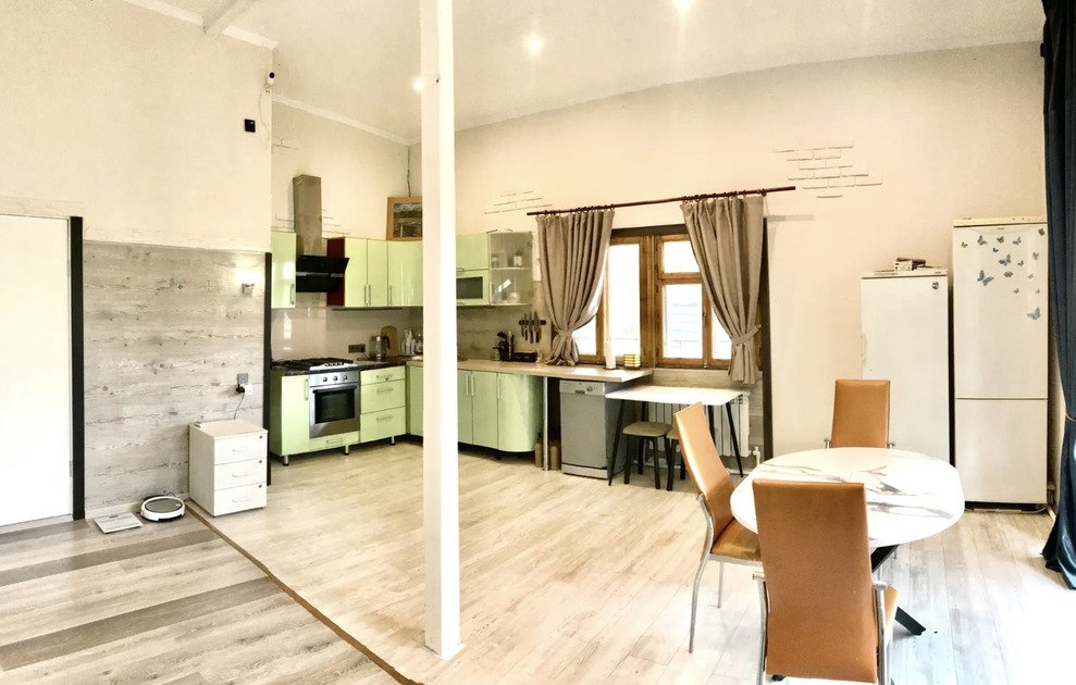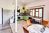 Дом оборудован всем необходимым для комфортного проживания. Кухонная и столовая зоны позволяют с легкостью готовить и принимать пищу на компанию до шести человек. Здесь есть все для удобства: современная техника и просторные рабочие поверхности.