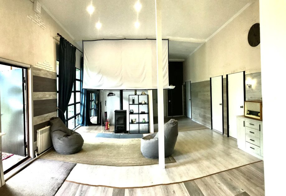«Мишкин дом» предлагает уютную гостиную с камином, проектором, Hi-Fi аппаратурой и виниловым проигрывателем — идеальное место, чтобы расслабиться в кругу семьи или друзей и насладиться кино или музыкой в домашней атмосфере.