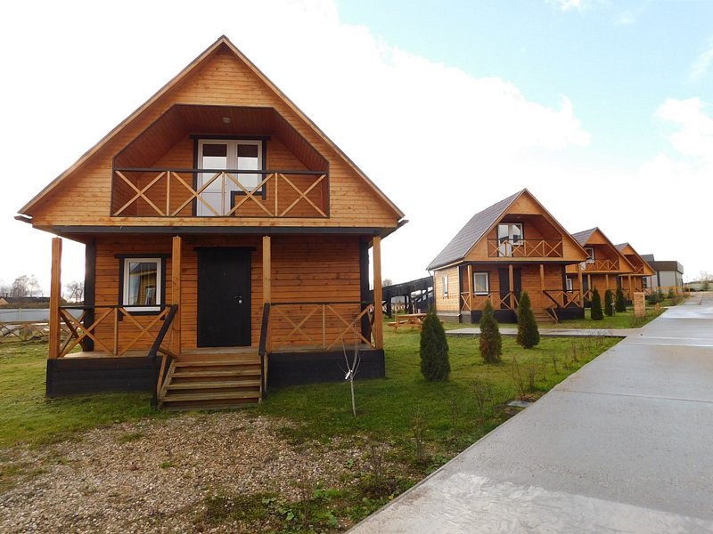 Уютный деревянный двухэтажный коттедж с балконом и уличной зоной отдыха. Прекрасно подходит для семейного отдыха.