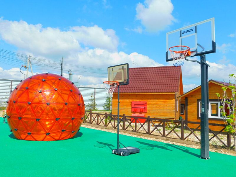 На территории комплекса расположена обширная детская площадка для активных и любознательных ребят. Здесь можно весело провести время, играя в баскетбол, настольный теннис или бадминтон.