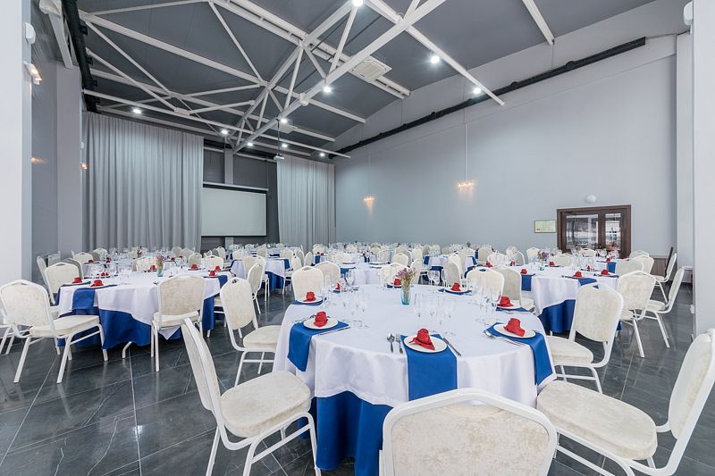Банкетный зал Панорамный: вместимость – 50-100 человек. Оплата: аренда зала + еда и напитки – 35 000 ₽ + 2500 ₽/чел.; аренда зала без еды – 45 000 ₽; аренда почасовая – 7500 ₽/час (не менее 3 часов).