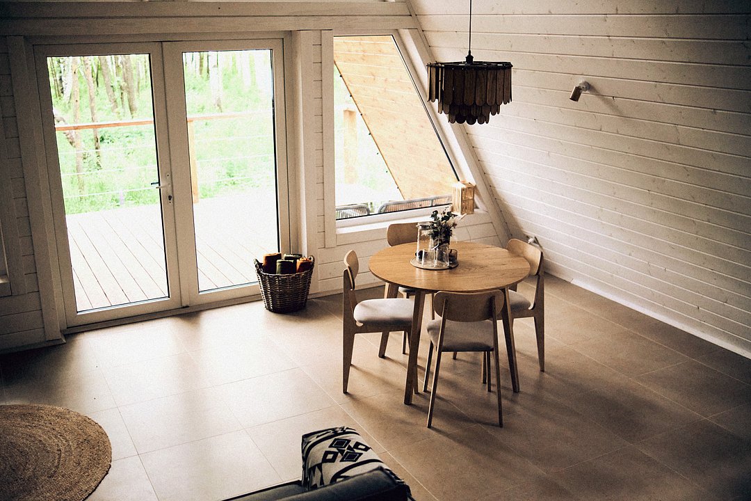 На террасе каждого домика есть диван с креслами и стол. Также на территории есть кафе, чтобы вы могли полноценно отдохнуть и не стоять у плиты).