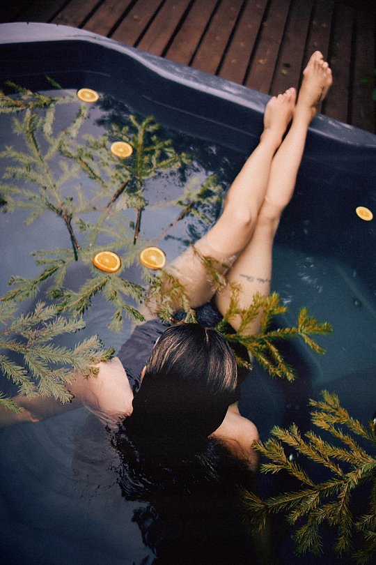 Ощутите контраст температур, находясь в горячей купели под открытым небом.
