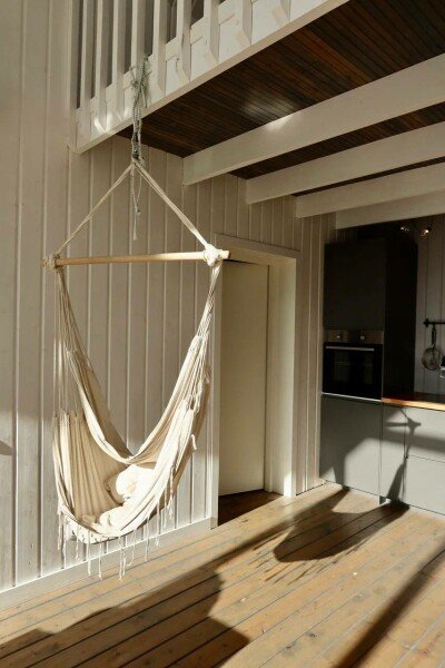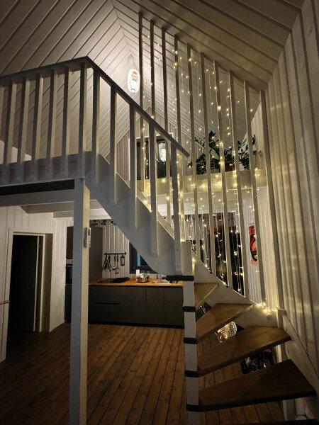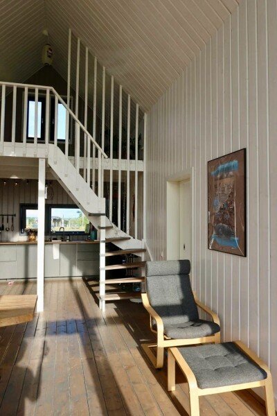 Дом рассчитан до 7 человек. Три спальни: 160*200, 140*200, 90+90*200, плюс отдельно спальное место на антресольном этаже гостиной 90*200.