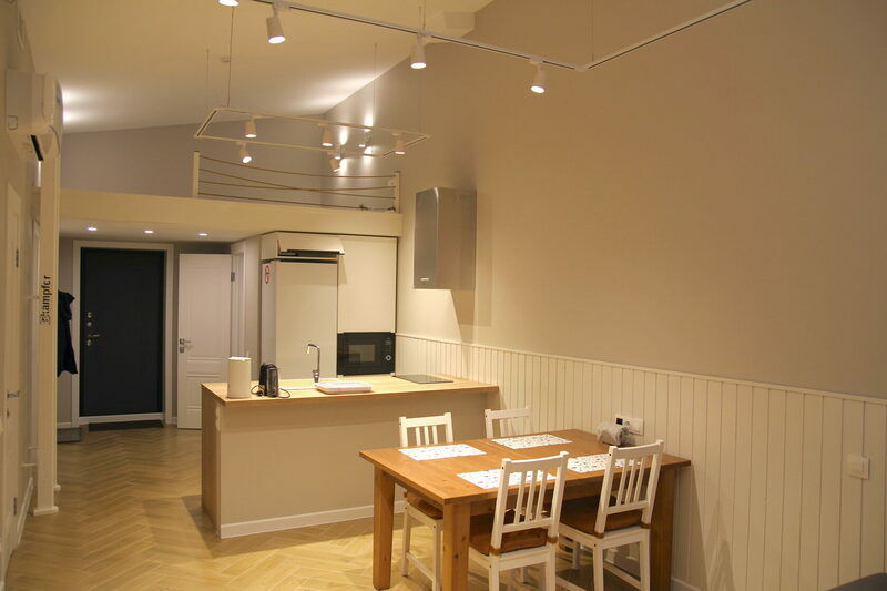 Для комфортного проживания гостей конструктив апартаментов построен абсолютно независимо от друг друга и разделен двумя толстыми стенами с воздушным пространством и дополнительной шумоизоляцией.
