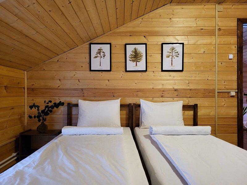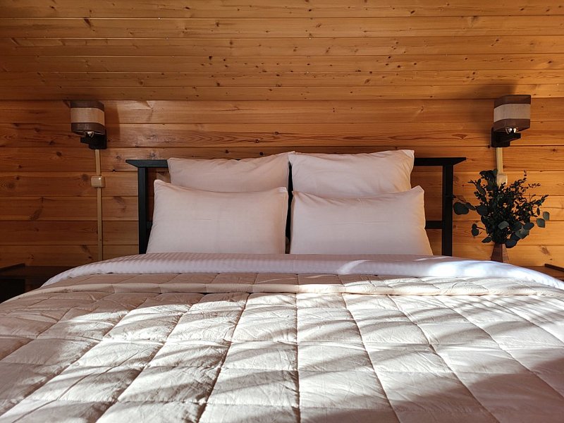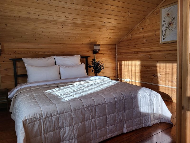 На участке расположено 2 дома. Гости могут выбрать один или арендовать сразу оба дома для двух семей. В частном доме есть бесплатный Wi-Fi, телевизор, кондиционер и кофемашина.