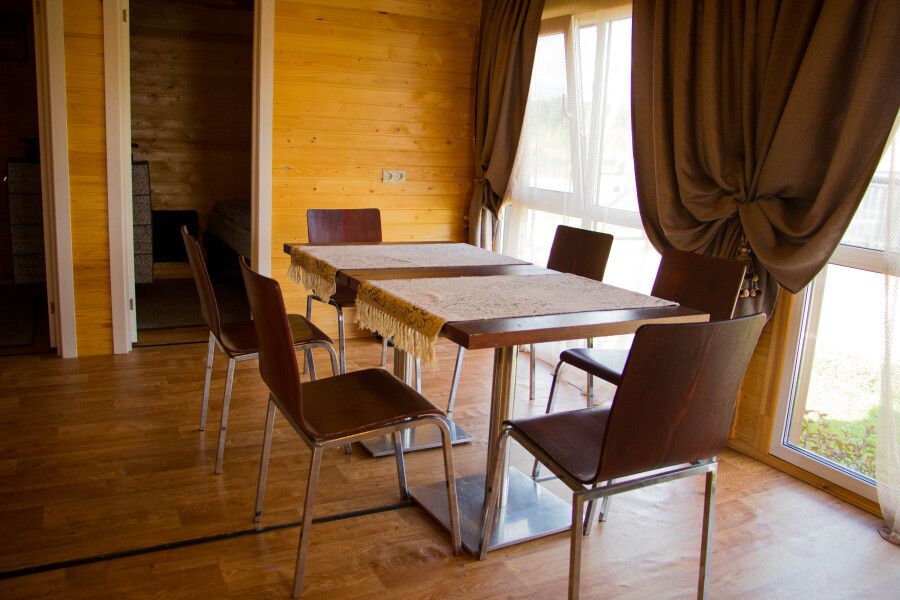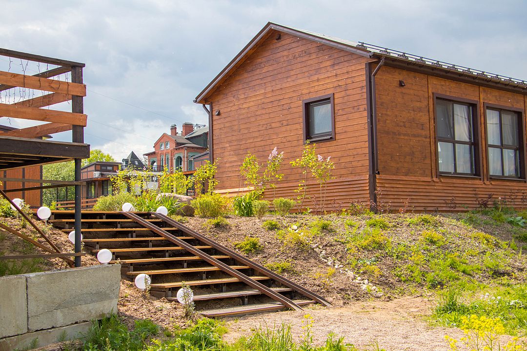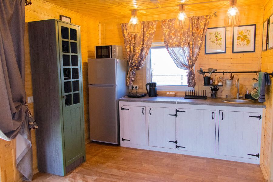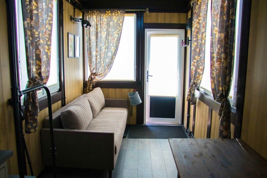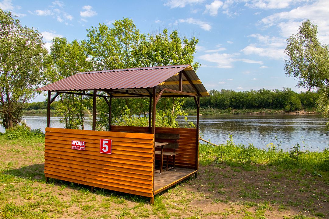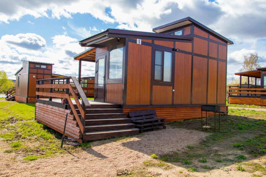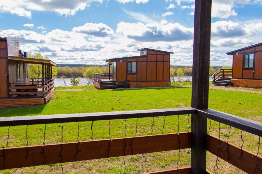Для комфортного проживания имеются уютные домики. Каждый домик оснащен собственной террасой с потрясающим видом на реку Оку, где вы сможете насладиться утренним кофе или романтическим вечером. Внутри вас ждет полностью оборудованная кухня с холодильником, микроволновой печью и чайником, кондиционер для комфортной температуры, санузел с предоставлением гигиенических принадлежностей, а также удобная столовая зона.