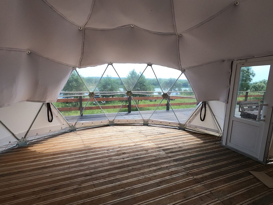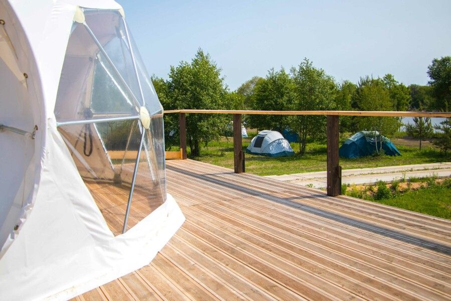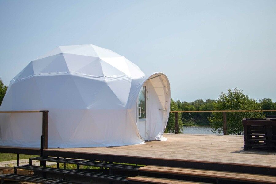 Большая купольная сфера, позволит вам уединиться и отдыхать только своей компанией. Ещё в сфере можно спрятаться от ветра или других осадков, если испортится погода.