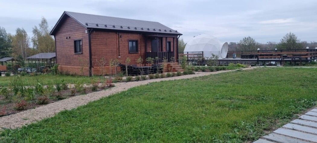 На территории базы «Окское Колесо» есть возможность арендовать большую летнюю площадку с купольным зданием-сферой, для отдыха компании до 20-ти человек.