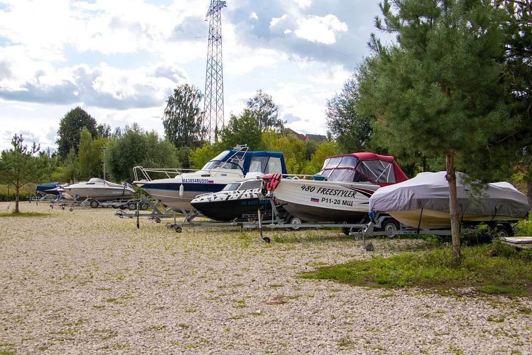 Большая парковка с местами под прицеп для лодок.