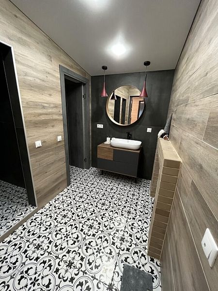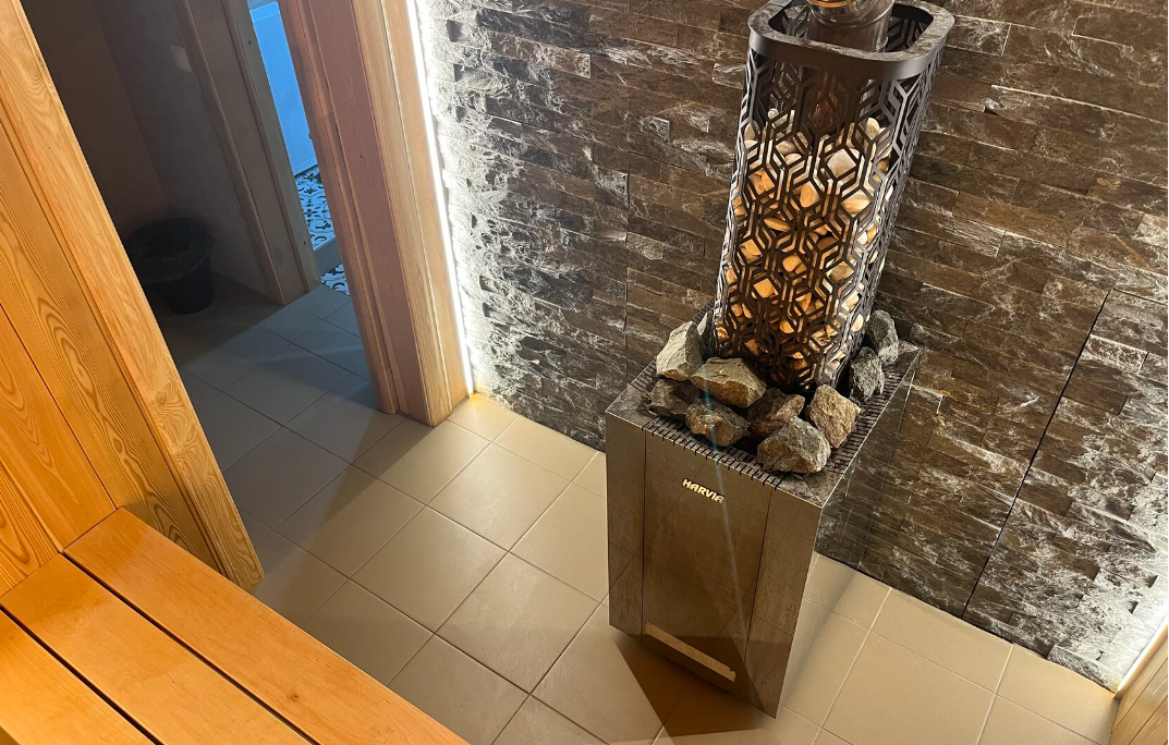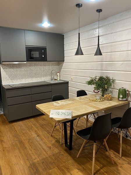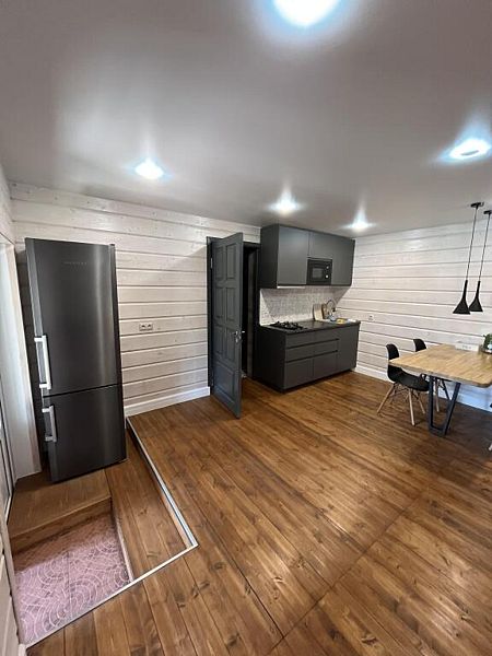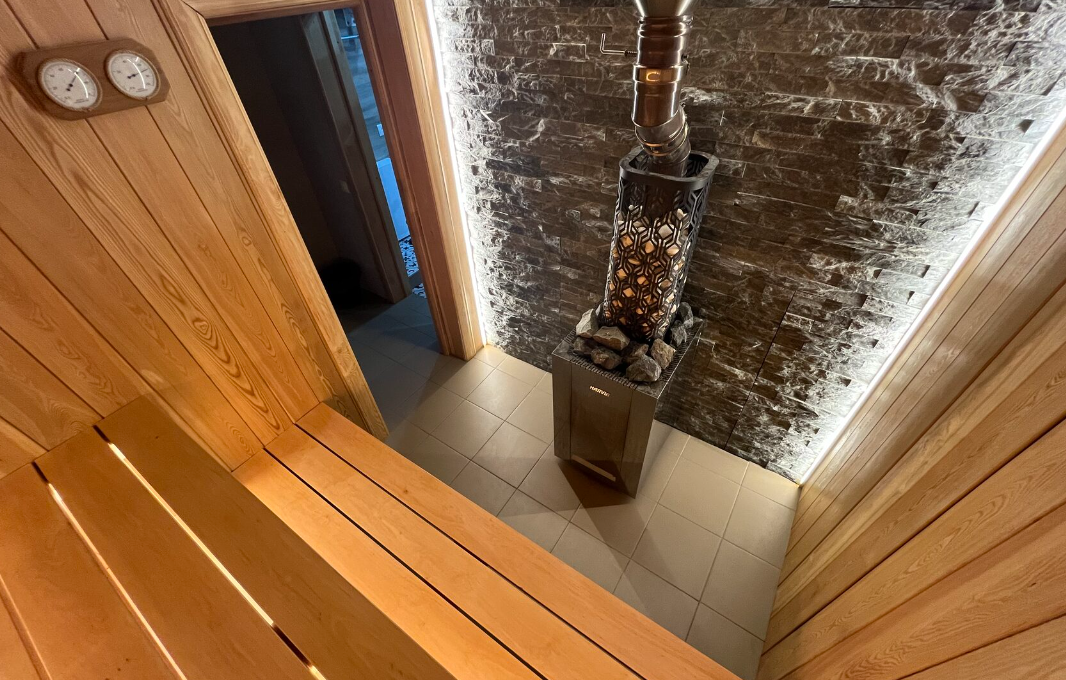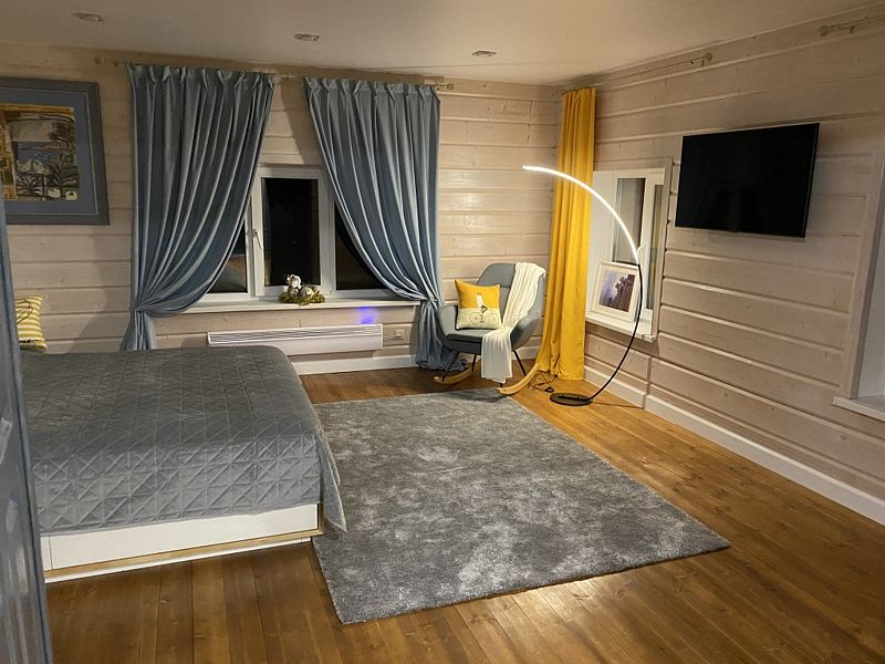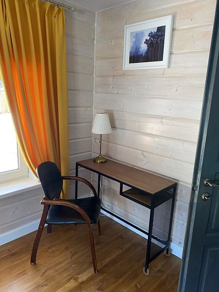 Баня из лиственницы и ольхи. Небольшая и уютная. Обогревается дровяной печью Harvia, быстро набирает тепло. Ванная и туалет, а так же сама баня оснащены теплым полом. Максимальная вместимость до 6 человек.
