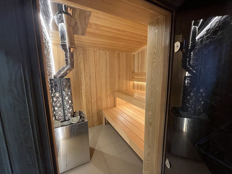 Инфраструктура: полотенца, шапочкиБаня из лиственницы и ольхи. Небольшая и уютная. Обогревается дровяной печью Harvia, быстро набирает тепло. Ванная и туалет, а так же сама баня оснащены теплым полом. Максимальная вместимость до 6 человек.
