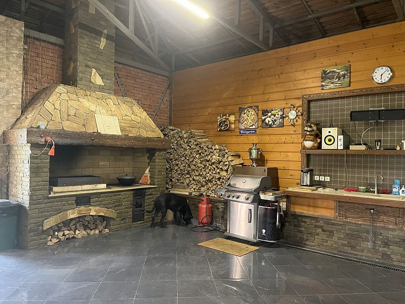 Читать полностьюВ зале есть: печь-мангал, газовый гриль, термопот, музыкальные колонки, теннисный стол, кресло-качели, баскетбольное кольцо, туалет внутри пространства.