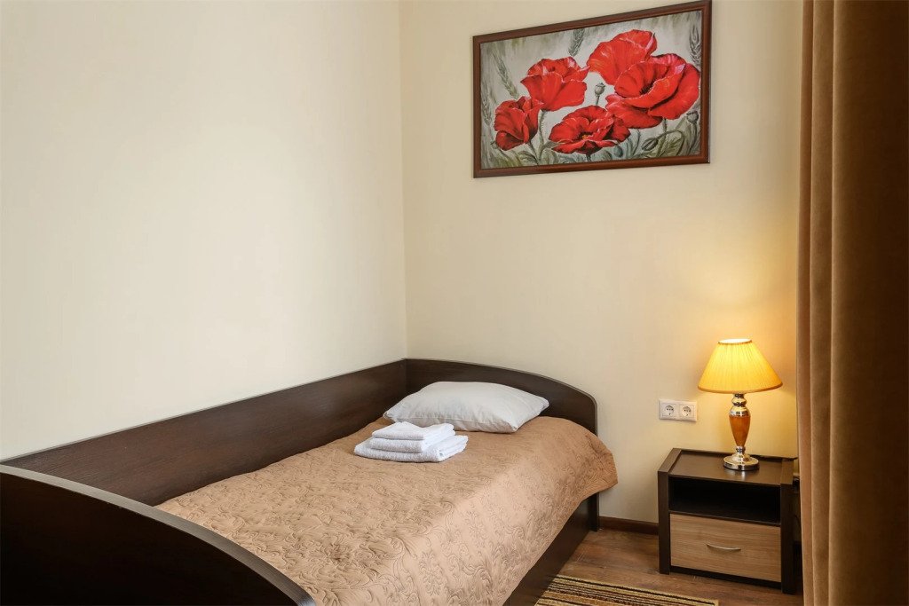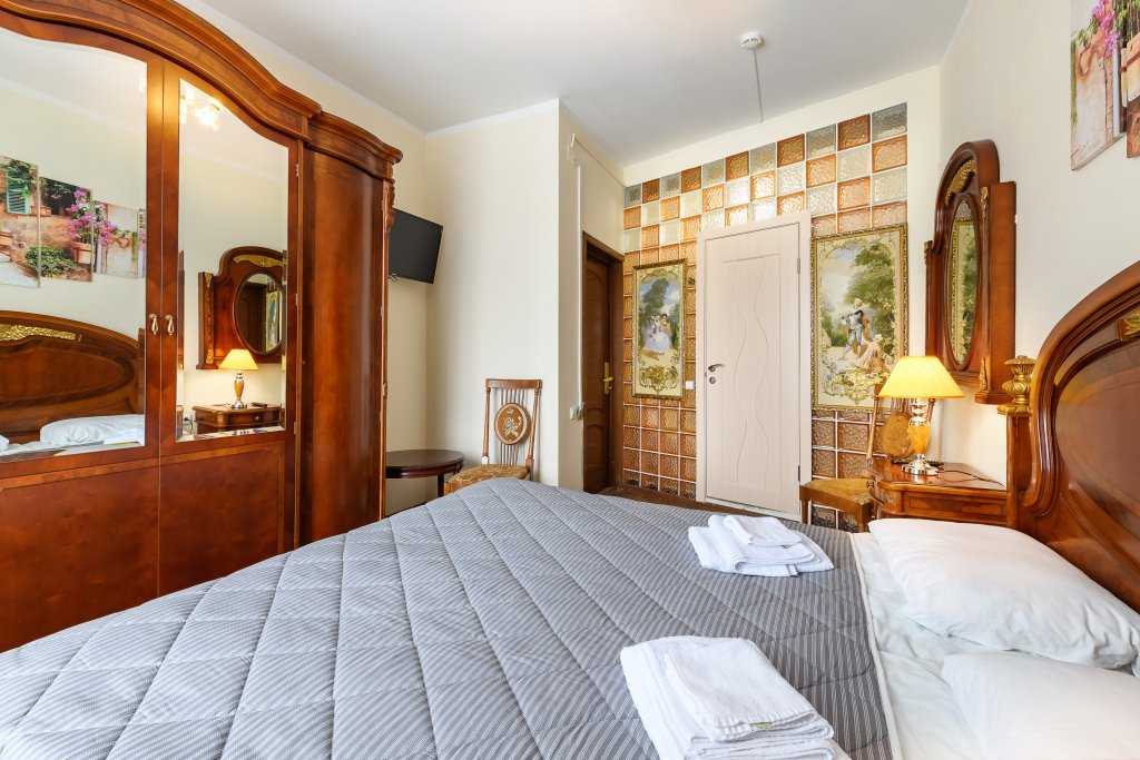 Чтобы вы могли отдохнуть после долгого дня, в номере есть телевизор. Оснащение зависит от выбранной категории номера.