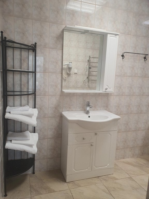 Все номера оснащены телевизором, холодильником и имеют собственные удобства: ванную комнату с душевой кабинкой, раковиной и туалетом.