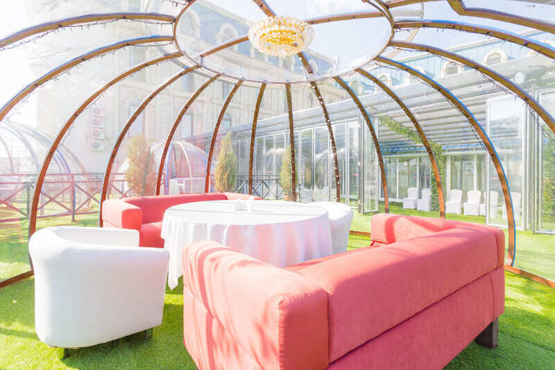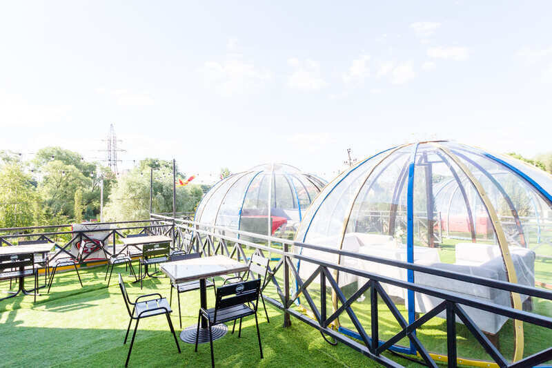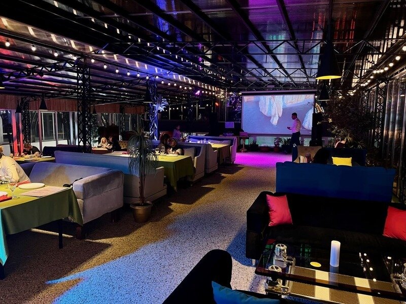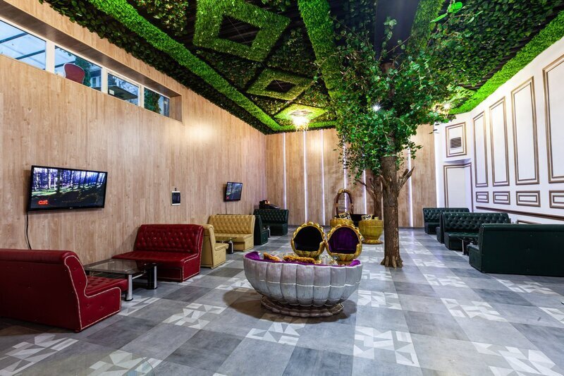 - Терраса до 60 человек, оборудование: проектор, экран, флипчарт с набором маркеров и бумаги, плазма, вода.