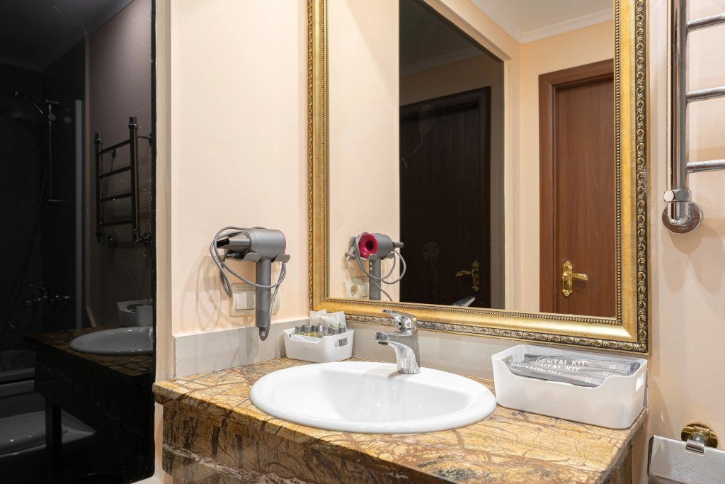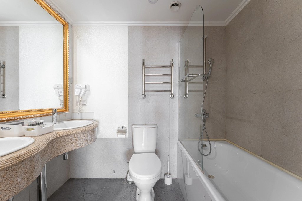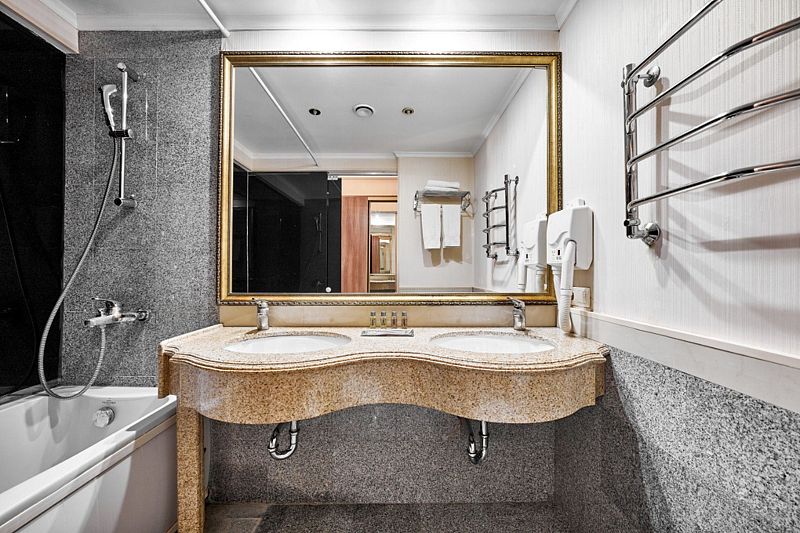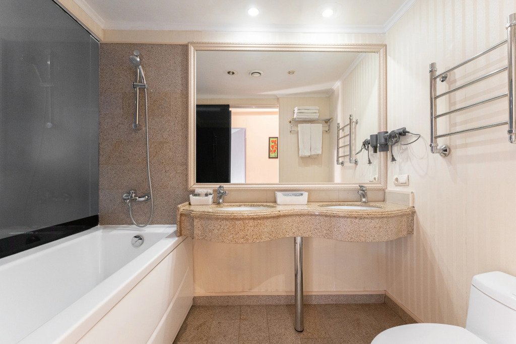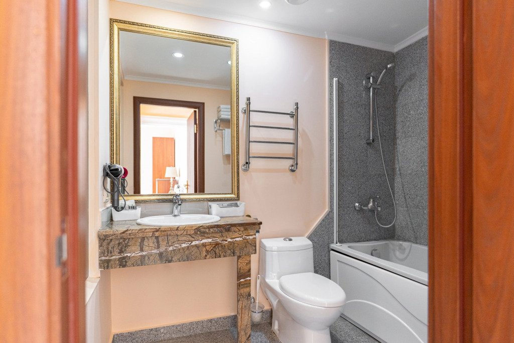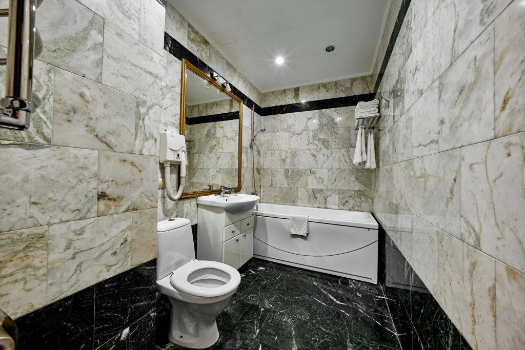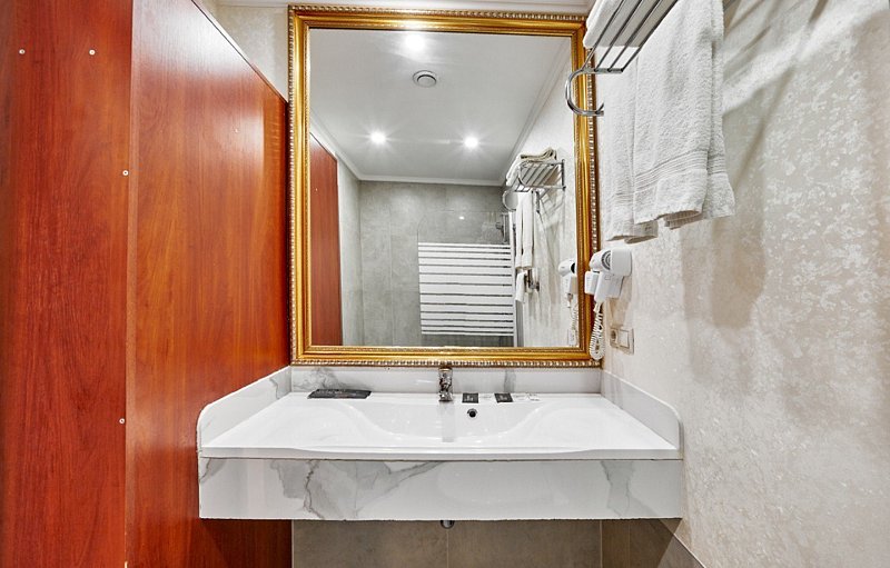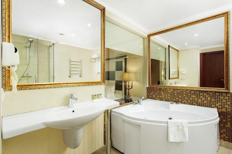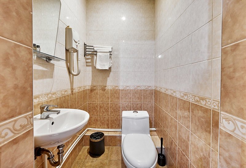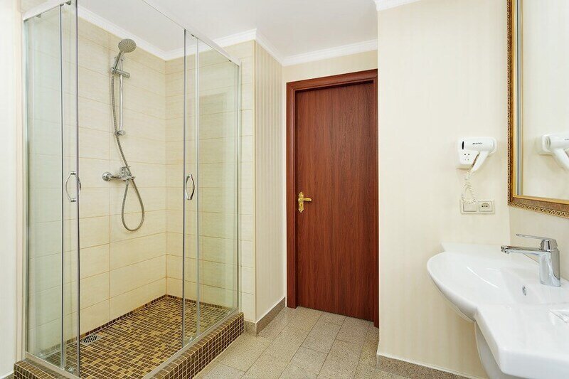 Ванная комната оснащена душевой кабиной. Гостям предоставляются туалетные принадлежности, тапочки и фен, а так же халат (по запросу).