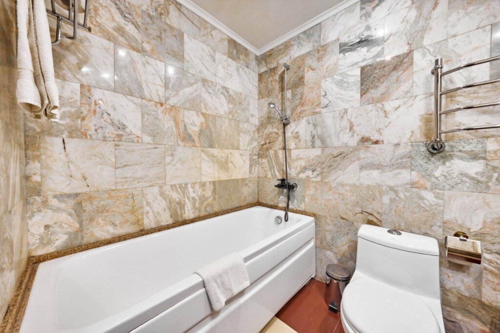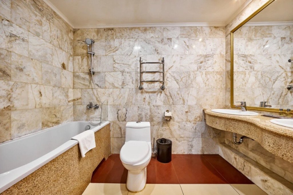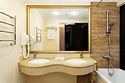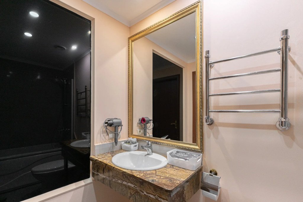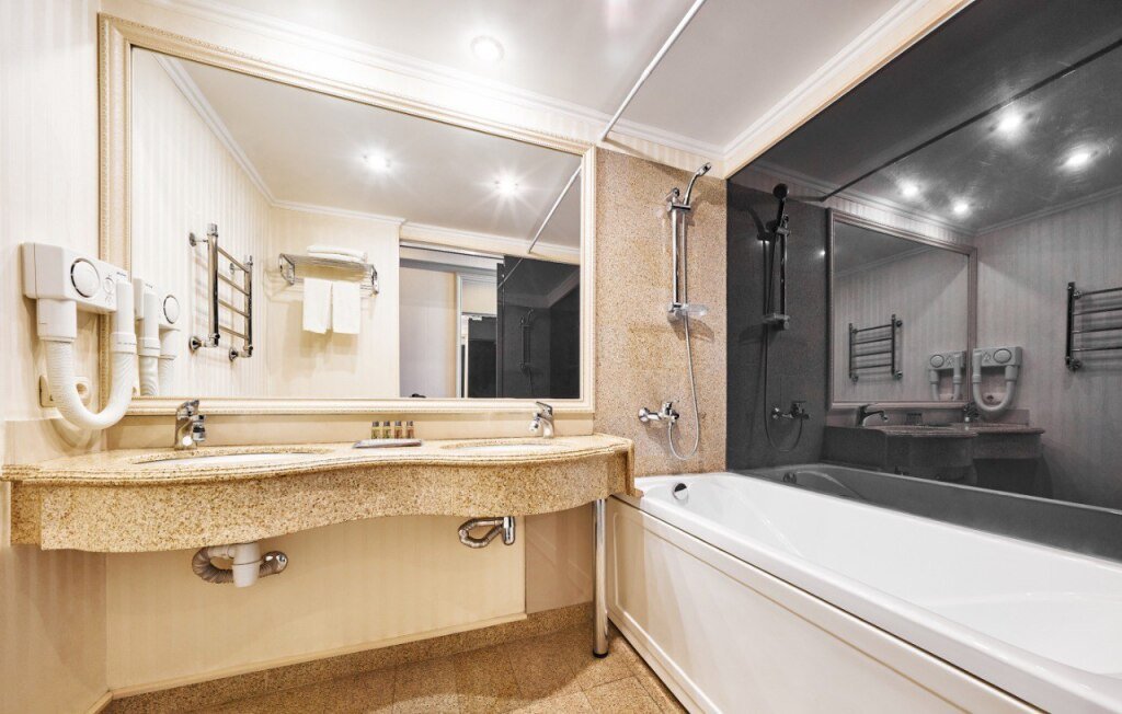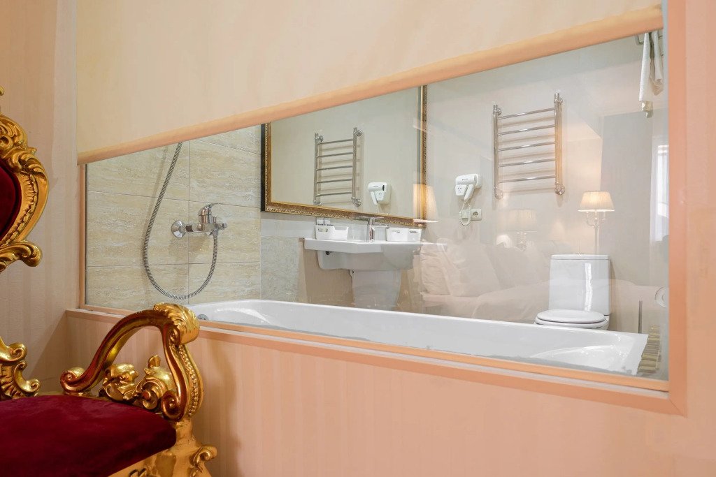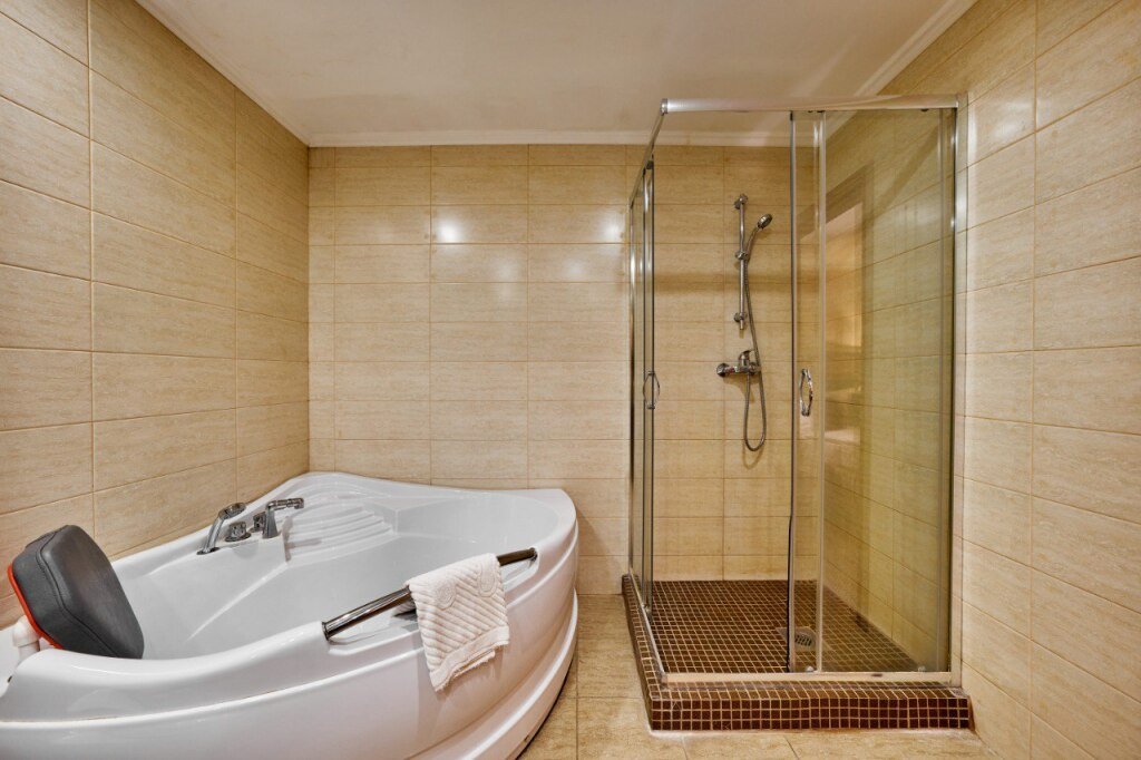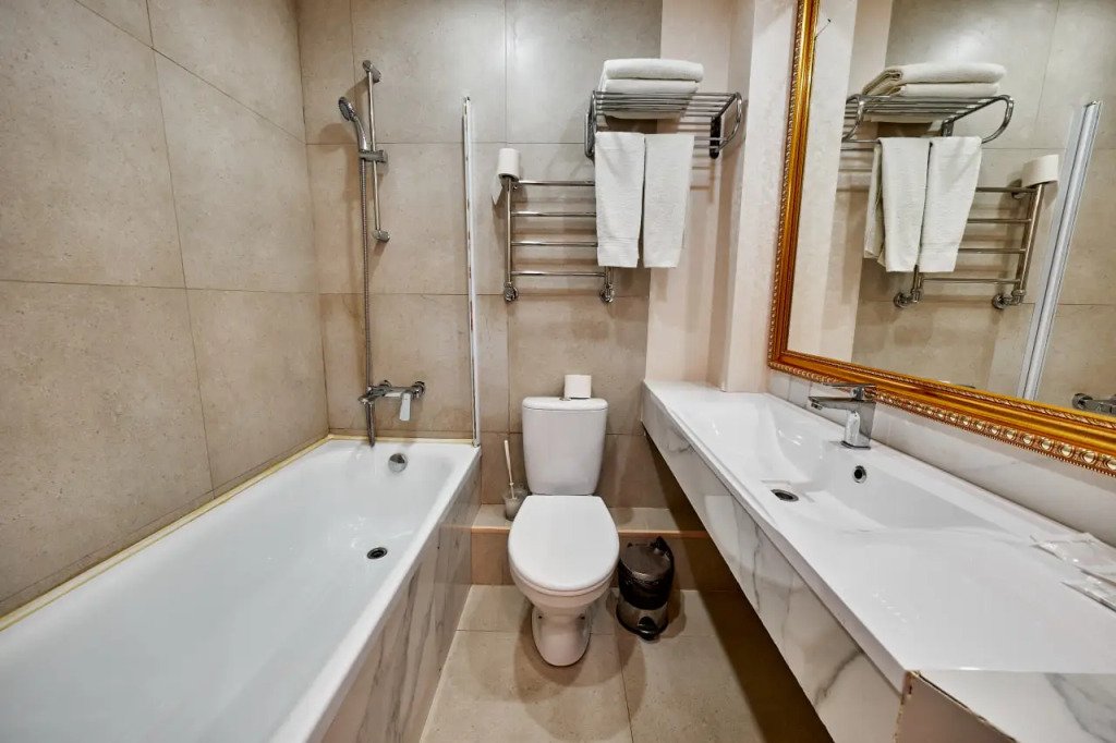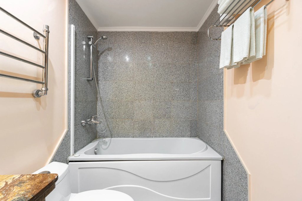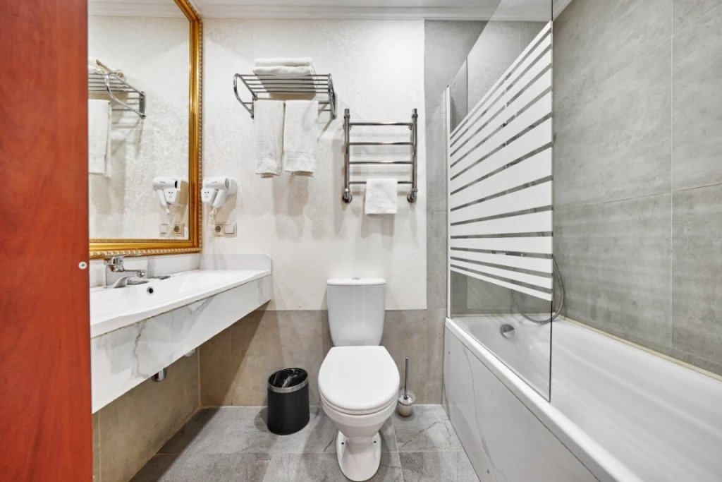 Ванная комната оснащена душевой кабиной. Гостям предоставляются туалетные принадлежности, тапочки и фен, а так же халат (по запросу).