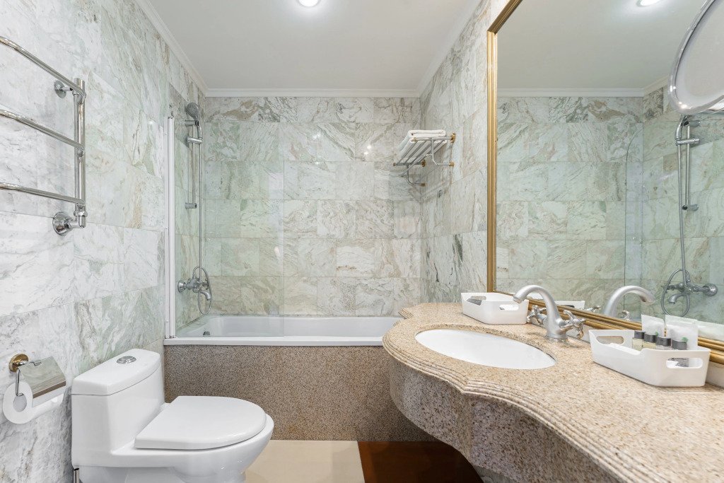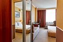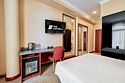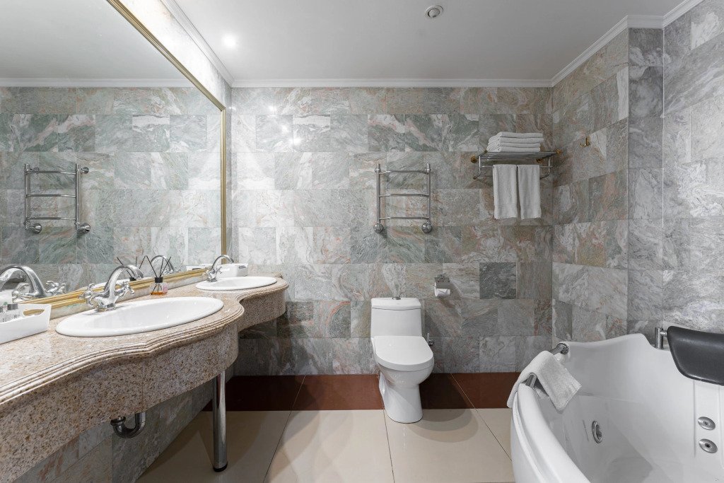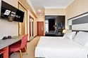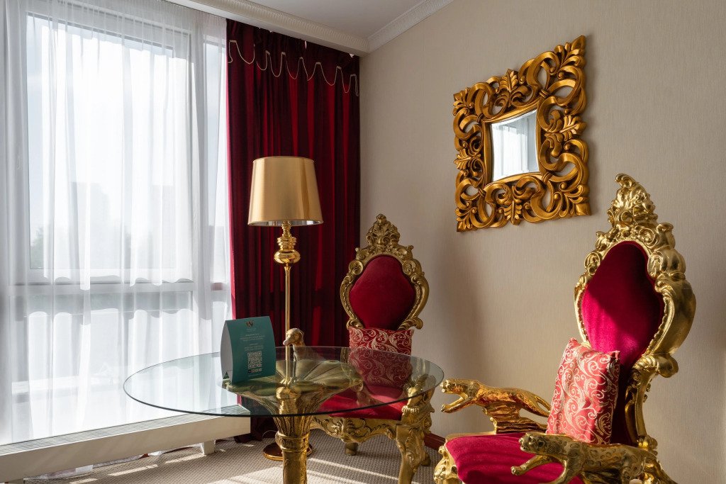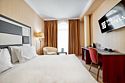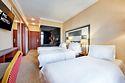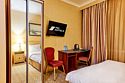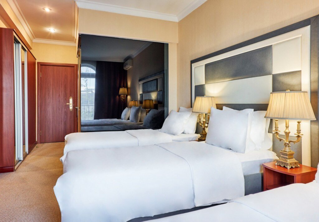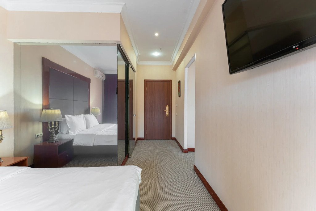 Интерьер выдержан в приятной теплой гамме, которая располагает к спокойному отдыху после насыщенного дня. Две Широкие двухместные кровати размера «King Size» снабжены ортопедическим матрасом, который гарантирует великолепный сон, а современная система климат-контроля обеспечит оптимальную температуру и максимальный уют в номере. В номере есть удобный письменный стол и высокоскоростной Wi-Fi, а также индивидуальный сейф для ценных вещей и документов.