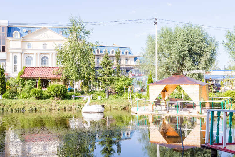На огромной зеленой территории отеля расположены пруд, детская площадка, зона для пикников с беседками и всеми удобствами для приготовления барбекю. В распоряжении отеля более 200 комфортабельных номеров и более чем 8 категорий.