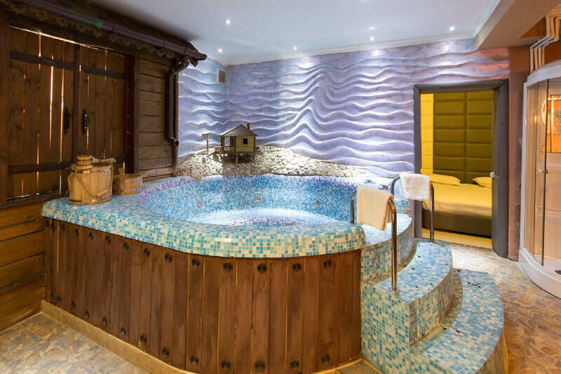 Шикарный номер категории «Люкс с сауной» — идеальное решение для всех, кто хочет насладиться настоящей финской сауной, не выходя из номера. Также вам доступны все преимущества номера люкс — уютная круглая кровать, кресла, журнальный стол, большой телевизор с плоским экраном и многое другое.