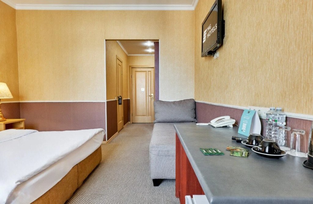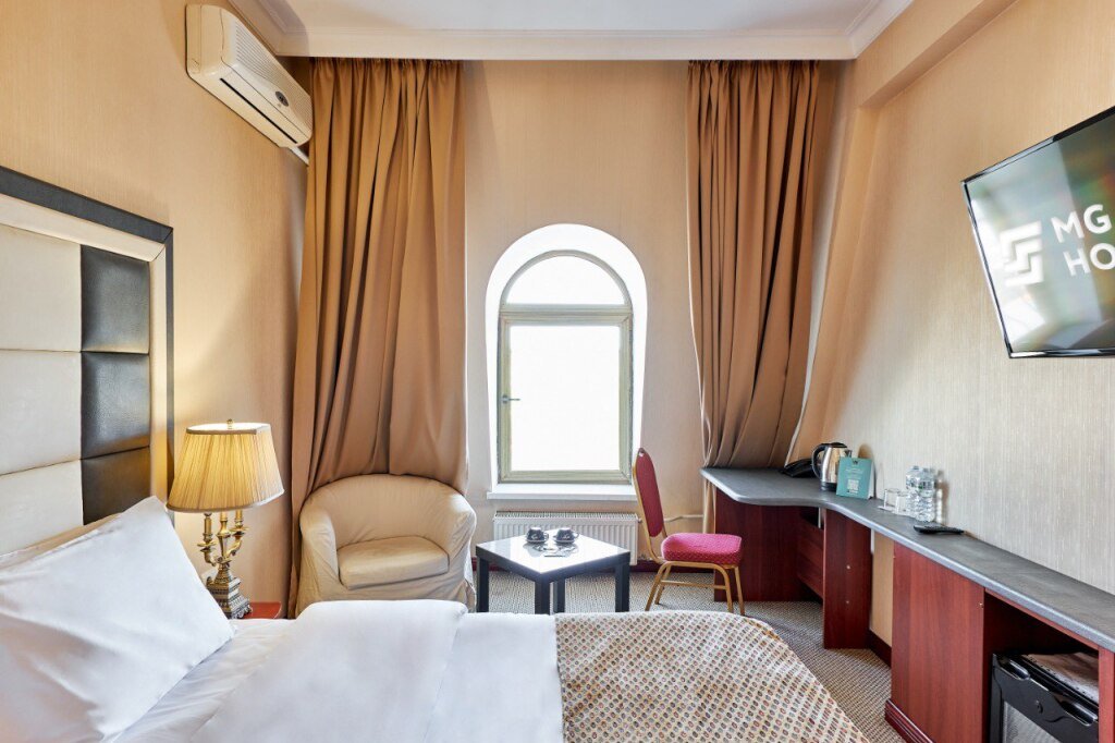 Бюджетный номер эконом-класса — это наиболее доступный и экономичный вариант размещения в нашем отеле. Номера этой категории не имеют окна, либо в номере находится имитация окна. Площадь номера от 20 кв.м.