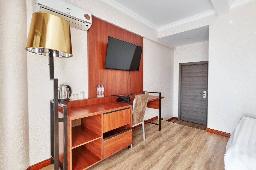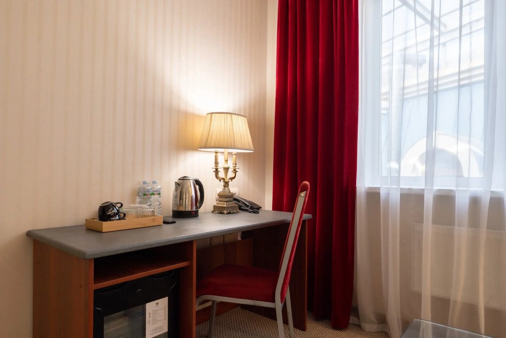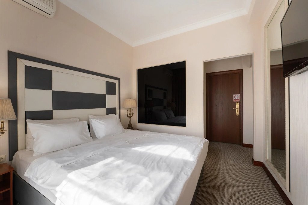 Один из лучших вариантов размещения — комфортный двухместный номер категории «улучшенный». В компактном номере нашлось место не только для комфортной двуспальной кровати с ортопедическим матрасом, но и для полноценной рабочей зоны с удобным столом и высокоскоростным беспроводным интернетом.