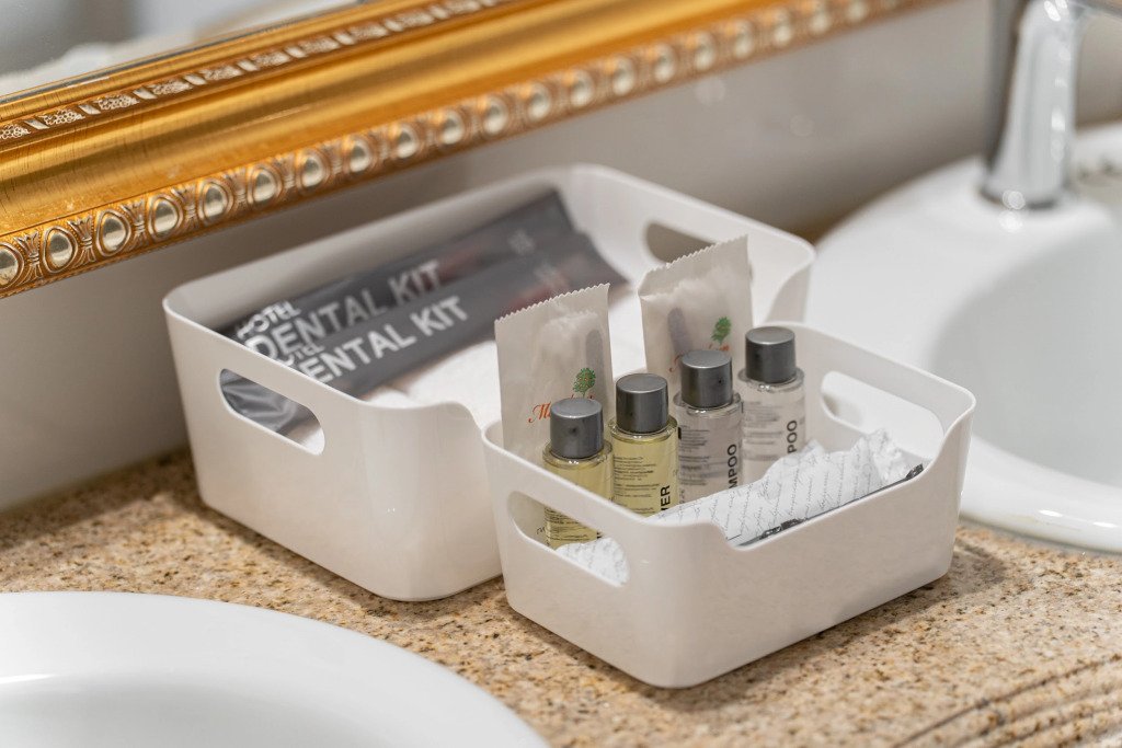 Ценные вещи и документы можно оставить в сейфе. Номера укомплектованы мини-баром, чайной станцией, телефоном, феном, гладильными принадлежностями и халатами. Ежедневно при жилой уборке происходит пополнение гигиенических принадлежностей, питьевой воды. Мини-бар не входит в стоимость номера и оплачивается отдельно. Под запрос предоставляются косметический и бритвенный наборы.