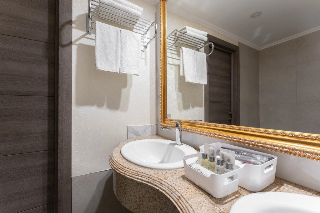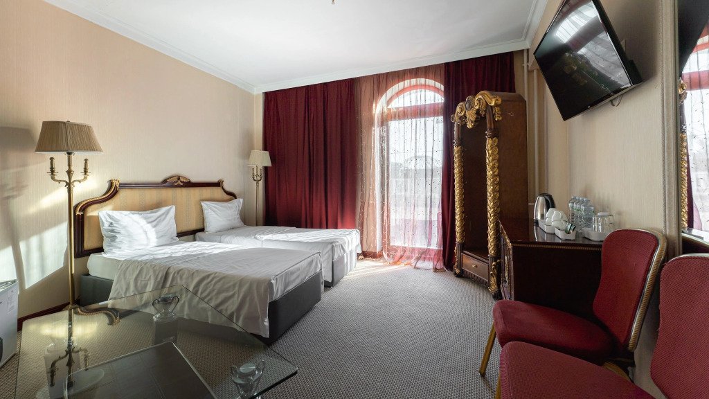 Мини-бар не входит в стоимость номера и оплачивается отдельно. Под запрос предоставляются косметический и бритвенный наборы. Окна номера выходят на тихую улицу, внутренний двор и на город, так что можете быть уверены: вашему отдыху не помешает шум.