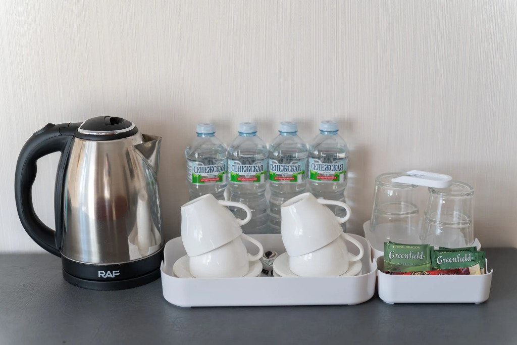 Номера укомплектованы мини-баром, чайной станцией, телефоном, феном, гладильными принадлежностями и халатами. Ежедневно при жилой уборке происходит пополнение гигиенических принадлежностей, питьевой воды. Мини-бар не входит в стоимость номера и оплачивается отдельно. Под запрос предоставляются косметический и бритвенный наборы.