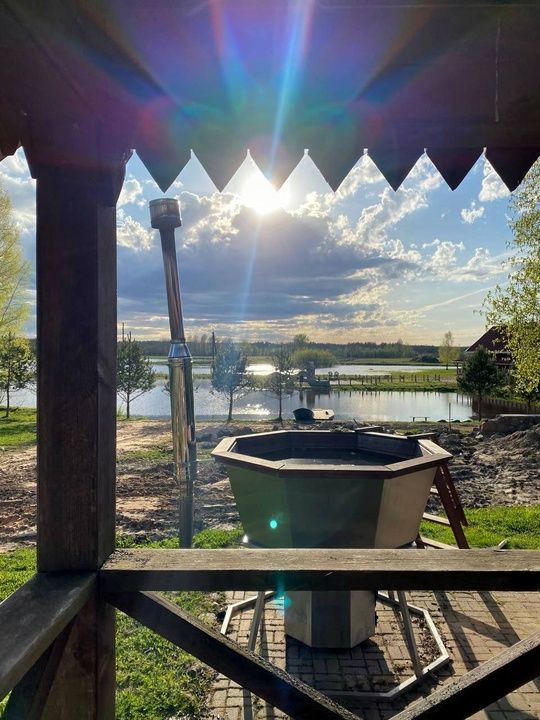 На территории усадьбы находится русская баня на дровах из сруба осины с комнатой отдыха. Просторная парная объемом 15м3 оборудована каменкой по-белому с натуральными камнями для мелкодисперсного пара. В бане комфортно могут разместиться до 6 человек.