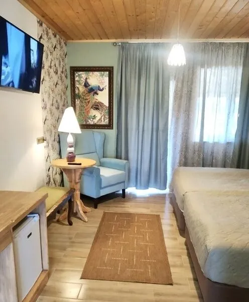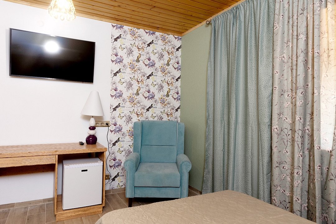 Комфортабельный номер со всеми удобствами. Собственная ванная комната, туалетные принадлежности. В каждом номере терраса с видом на пруды.