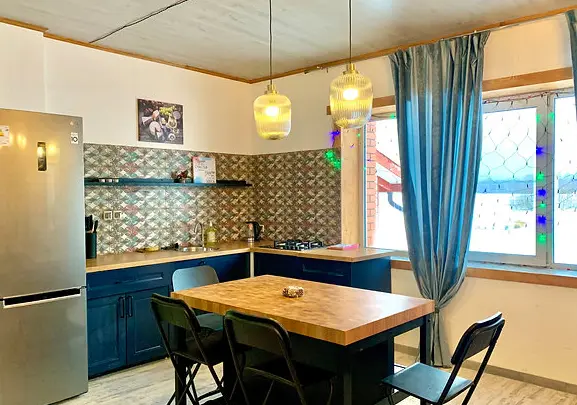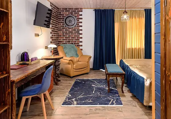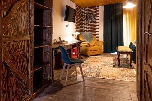 Состоит из кухни-гостиной и 1 спальней. Отдельный вход и выход на террасу. Если вы приезжаете компанией, удобно будет снять этот номер с кухней и номера повышенной категории.