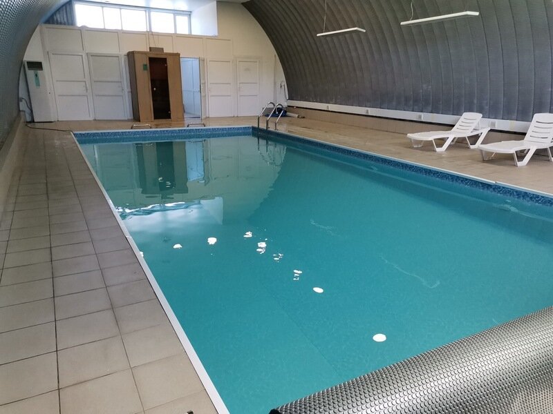 Тип бассейна: крытый бассейнВода в бассейне: подогреваемый бассейнРядом с бассейном: шезлонгиРазмеры: 5 x 11 мПлощадь: 55 м²Круглогодичный бассейн с зоной для отдыха.