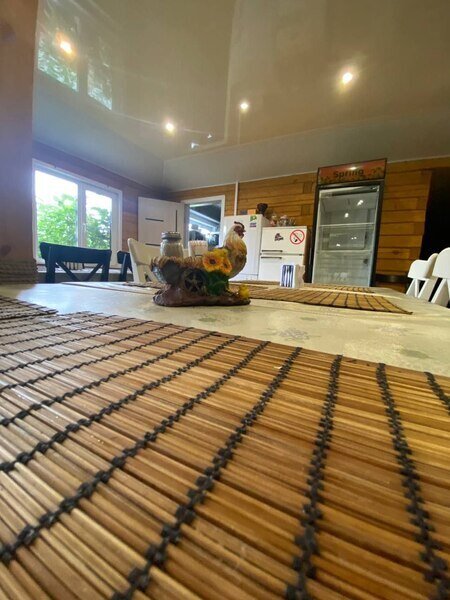 Для постояльцев гостевого дома «Кинтереп» предоставляется в пользование общая кухня для самостоятельного приготовления блюд и большая столовая зона.