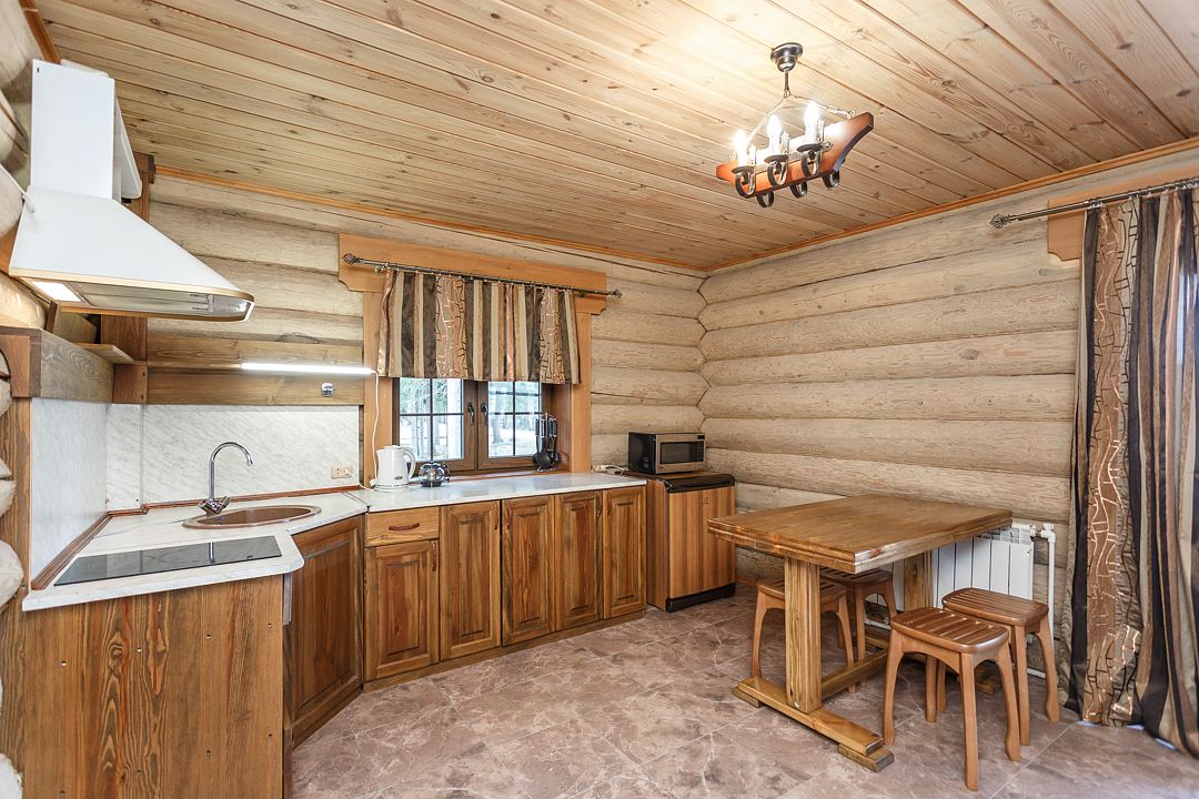 коттедж - уютный рубленый деревянный дом с авторской мебелью ручной работы, выполненный полностью из экологически чистых материалов, первый этаж: прихожая, холл, санузел, спальня, большая кухня-гостиная; второй этаж: холл с двумя раскладными креслами, спальня, санузелУслуги и удобства