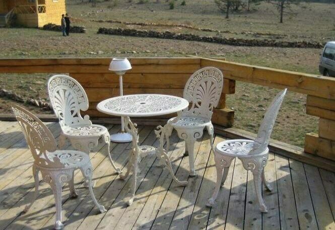 Санузел: душ (холодная, горячая вода), раковина,унитаз. На веранде – пласт.стол и кресла.