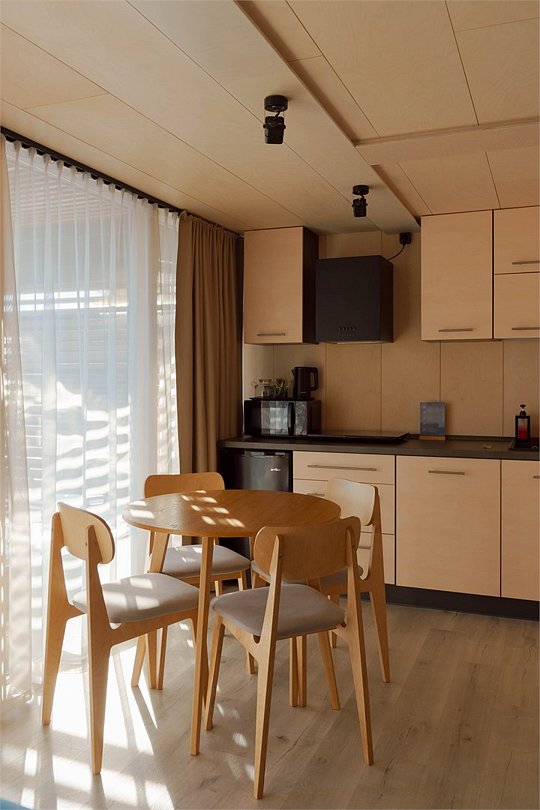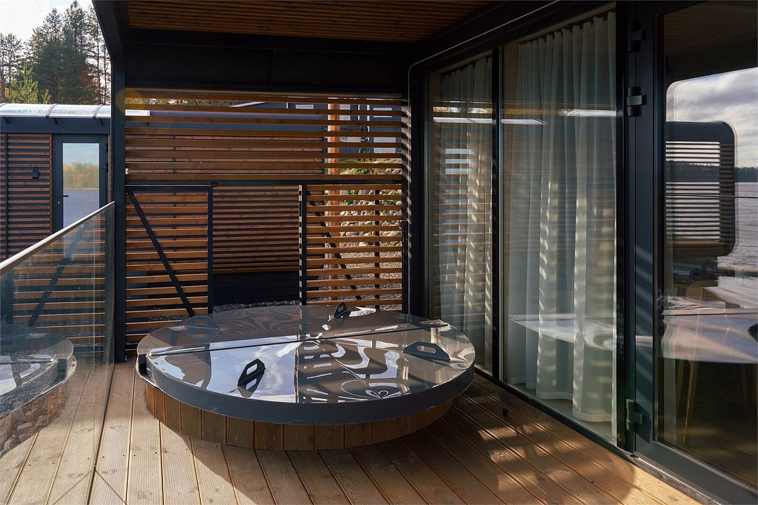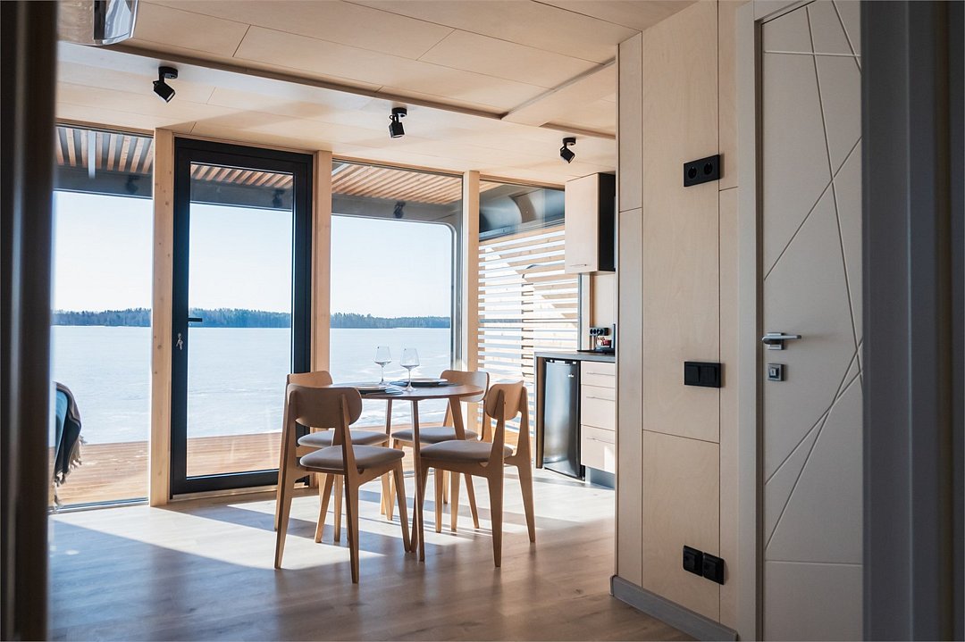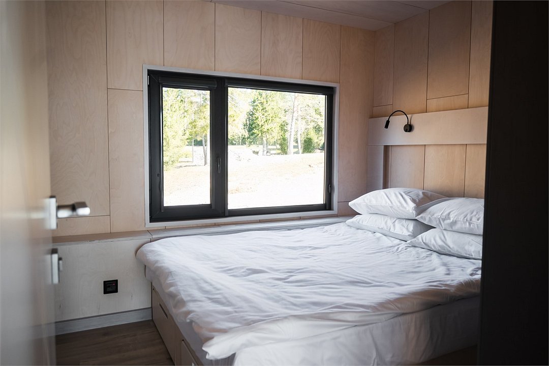 Удобный и светлый дом для спокойного отдыха рядом с озером. Подходит для семьи или компании до четырёх человек. В доме — две отдельные спальни, гостиная с мягким диваном, полностью оборудованная кухня и санузел с душем. Из панорамных окон открывается приятный вид на озеро, а на террасе можно с комфортом проводить время на свежем воздухе. Современная отделка, тёплый пол и все необходимые удобства — для отдыха без лишних хлопот. В доме: • две двуспальные кровати и диван • кухня с плитой, холодильником, микроволновкой и посудой • душ и туалет • тёплый пол, горячая вода • терраса с мебельюУслуги и удобства