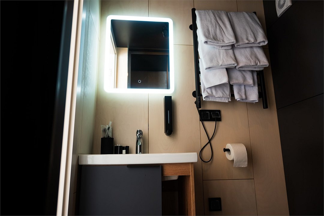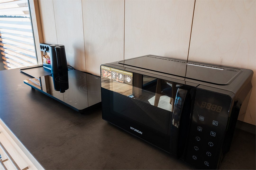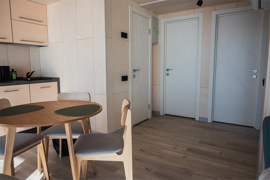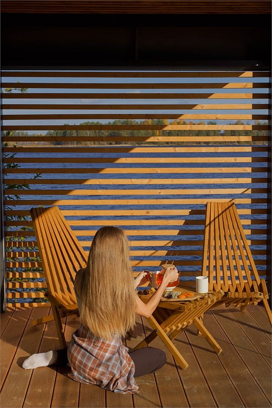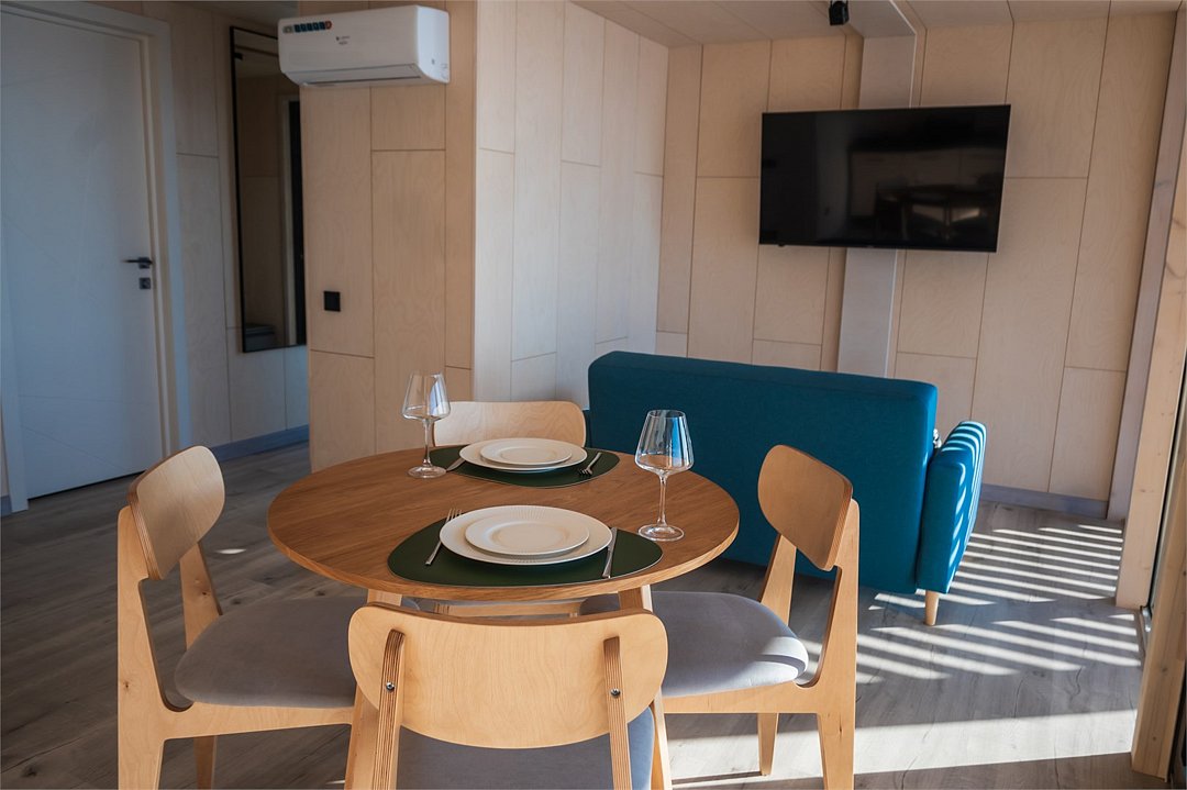 Просторный дом с современным интерьером и прямым выходом к озеру. Подходит для семьи или небольшой компании, ценящей комфорт и приватность. В доме — две изолированные спальни, гостиная, кухня с полным оснащением и санузел с душем. Большие окна наполняют пространство светом, а с террасы открывается живописный вид на воду. Уютная атмосфера, продуманная планировка и тихое расположение делают дом «Премиум» отличным выбором для отдыха в любое время года. В доме: • две отдельные спальни с удобными кроватями • гостиная с диваном • кухня с плитой, холодильником, микроволновкой и посудой • санузел с душем • тёплый пол, горячая вода • большая терраса с видом на озероУслуги и удобства