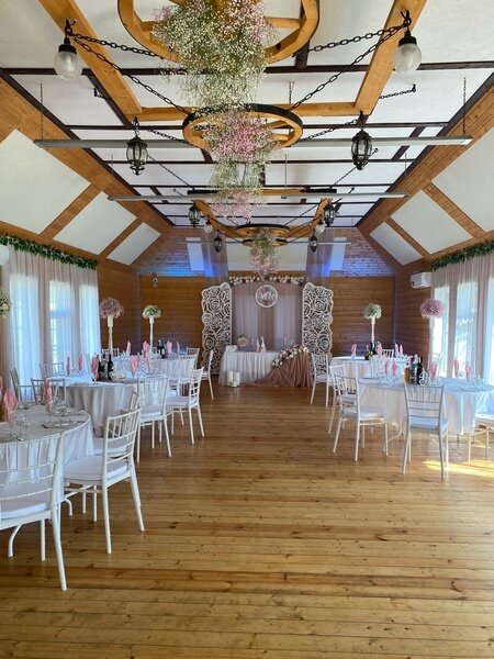 По запросу выдается посуда и сервируются столы за отдельную плату. Также здесь помогут с организацией питания и украшения зала.