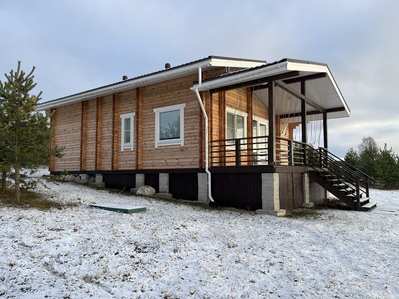 Дом одноэтажный. С террасы открывается неповторимый вид на озеро и карельскую природу. Для безопасности гостей, дом оборудован пожарной сигнализацией.