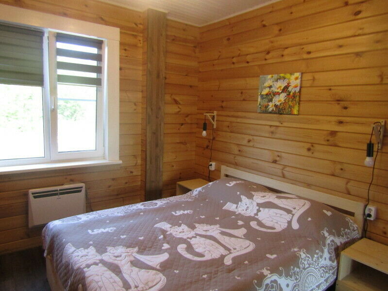 В доме имеются две спальни, с большими двуспальными кроватями на ортопедических матрасах. В гостиной есть большой раскладной диван для дополнительных гостей. Печь-камин, 2 туалета, душевая. Из бытовой техники это посудомоечная и стиральные машины, электроплита, микроволновка, холодильник, мультиварка, чайник, тостер, фен, утюг, телевизор и пр. Отопление электрическое автоматизированное.