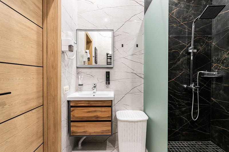 - санузел с необходимыми туалетными принадлежностями, полотенца, халаты;